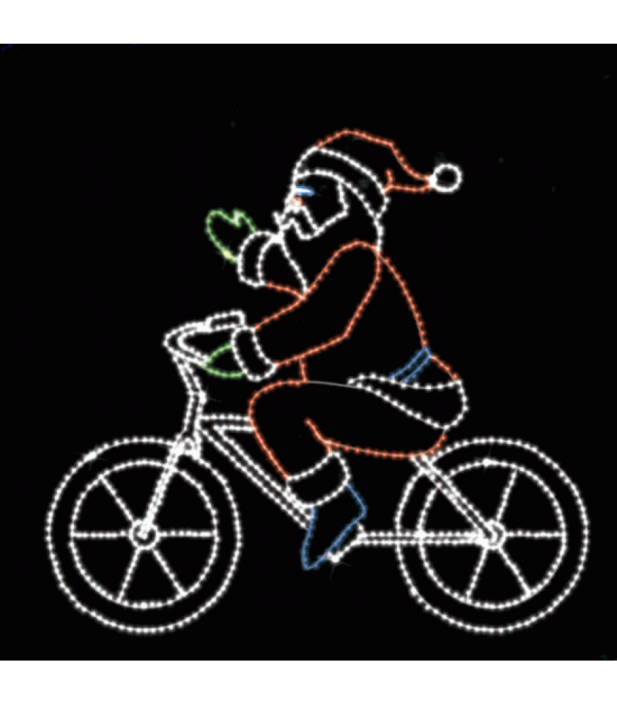 9' x 10' Bicycling Santa - Lit with 425 C7 Bulbs - LED Option Available
